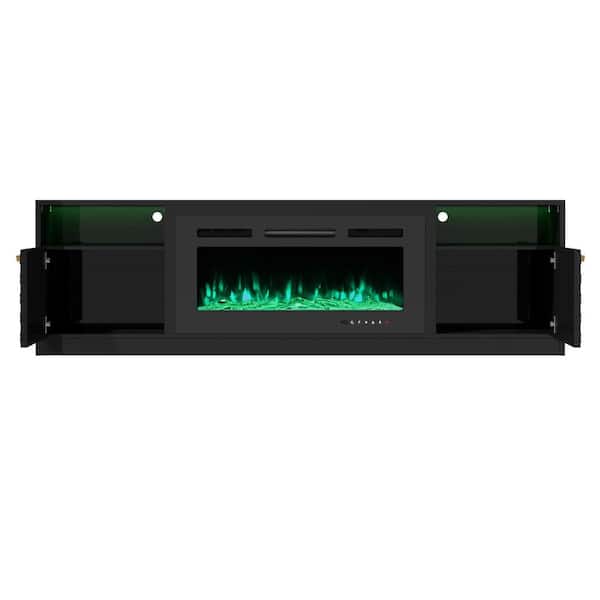 16 in. Multifunctional Electric Fireplace TV Stand, Freestanding in Black