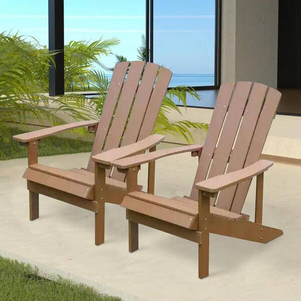 2-Sets Patio Plastic Adirondack Chair Lounger Weather Resistant Furniture for Lawn Balcony in Brown