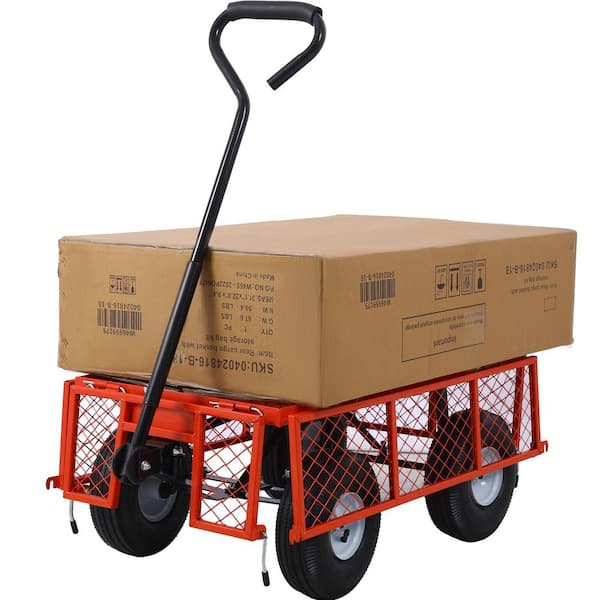 3 cu. ft. Steel Garden Cart, Steel Mesh Removable Sides, 550 lbs. Capacity, Red