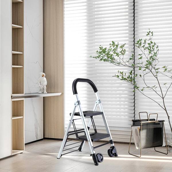 3 ft. Reach 2-Steps Dual Use Foldable Ladder and Trolley, Trolley Max Capacity: 130 lbs.