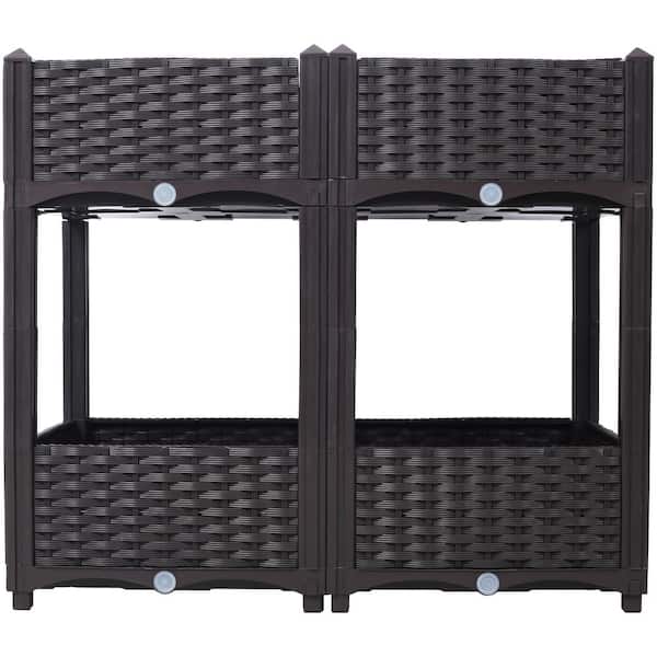 31.5"x 15.7"x 27.7" Elevated Planter Garden Box with Drainage Plug Raised, Standing Planter Beds,Brown, Plastic
