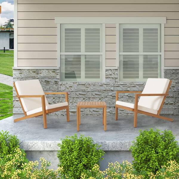 34.25 in. Teak Rectangle Wood Picnic Tables Seats 2 People with Beige Cushions