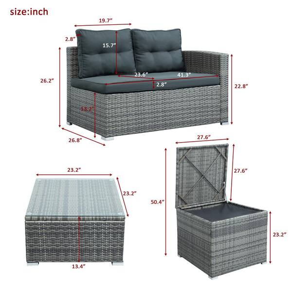 4-Piece Wicker Outdoor Patio Conversation Set Sectional Sofa Set with Gray Cushions