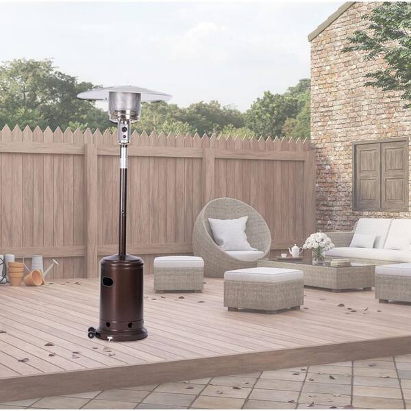 46000 BTU Metal Propane Patio Heater with 2 Smooth-Rolling Wheels in Brown