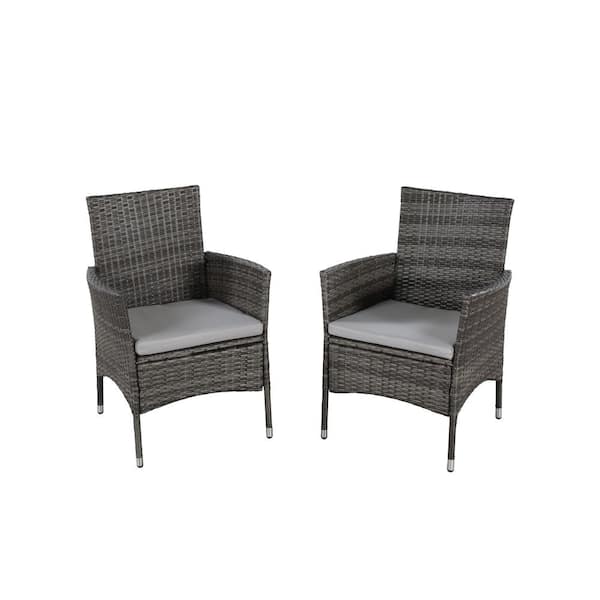5-Pieces PE Rattan Wicker Patio Dining Set with Grey Cushions