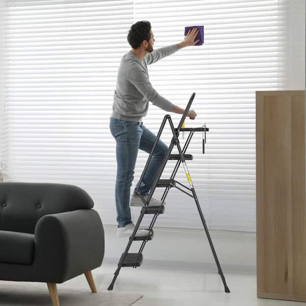 5-Step, 5.5 ft. Reach Steel Lightweight Portable Foldable Step Ladder with Tool Tray and Wide Non Slip Pedals, Handrails