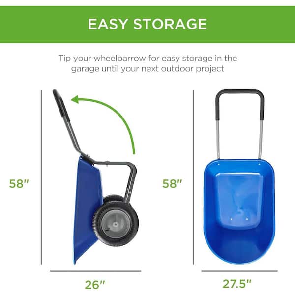 5 cu. ft. Wheelbarrow 2-Wheeled Trolley for Green Garden 15 in. Pneumatic Wheel, Steel