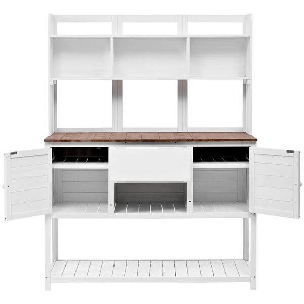 50.2 x 19.7 x 66.1 in. Solid Fir Wood Potting Bench Garden Workstation with Hutch, Drawer and Adjustable Shelves, White