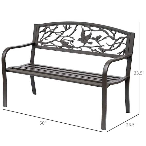 50" Garden Bench, Outdoor Patio Bench with Animal Pattern, Cast Steel Metal Bench for Yard, Lawn, Porch, Brown