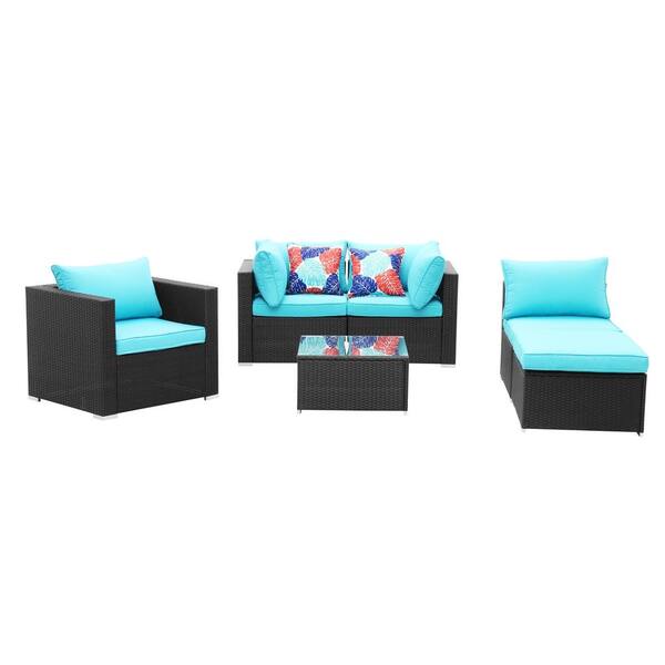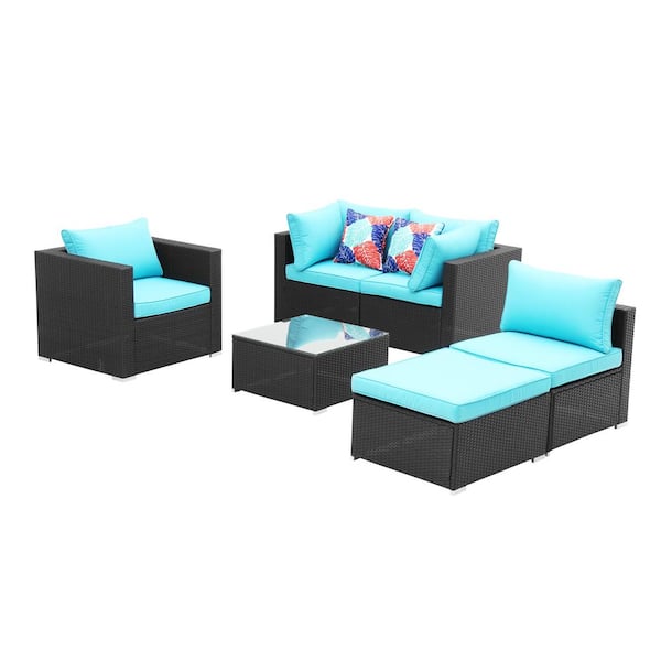 6-Piece Outdoor Rattan Sofa Leisure Patio Furniture with Blue Cushion