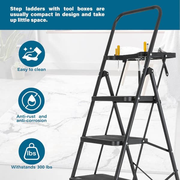 6-Step, 6 ft. Reach Steel Lightweight Portable Foldable Step Ladder with Tool Tray Wide, Non Slip Pedals and Handrails