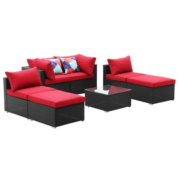 7-Piece Outdoor Rattan Sofa Leisure Patio Furniture with Red Cushion