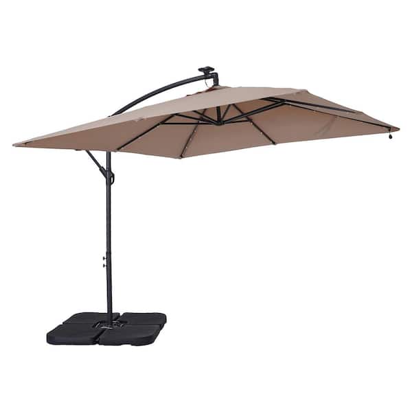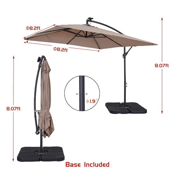 8.2 ft. Cantilever Outdoor Solar LED Patio Hanging Umbrella with Cross Base in Sand