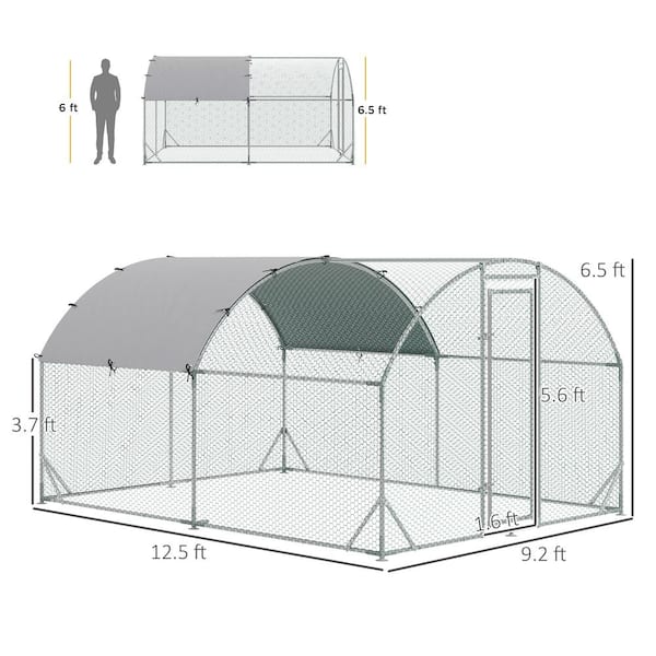 9.2 ft. x 12.5' x 6.5' Large Metal Dome Shaped Walk-in Chicken Coop with Waterproof and Anti-UV Cover, Poultry Supplies