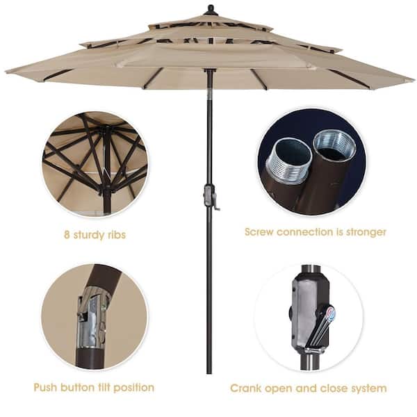 9 ft. 3 Tiers Market Round Outdoor Patio Umbrella with Push Button Tilt and Crank in Beige