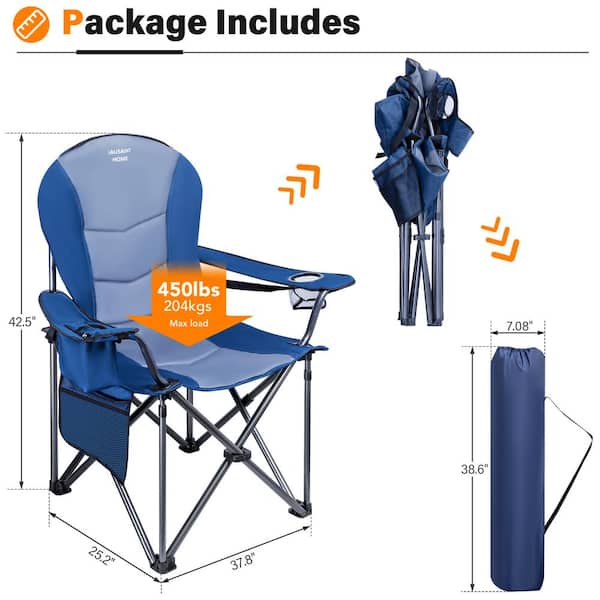 Blue Metal Folding Patio Camping Chair with Carrying Bag