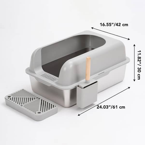 Enclosed Stainless Steel Cat Litter Box with Lid Extra Large, Metal Litter Pan Tray with High Wall Sides Enclosure