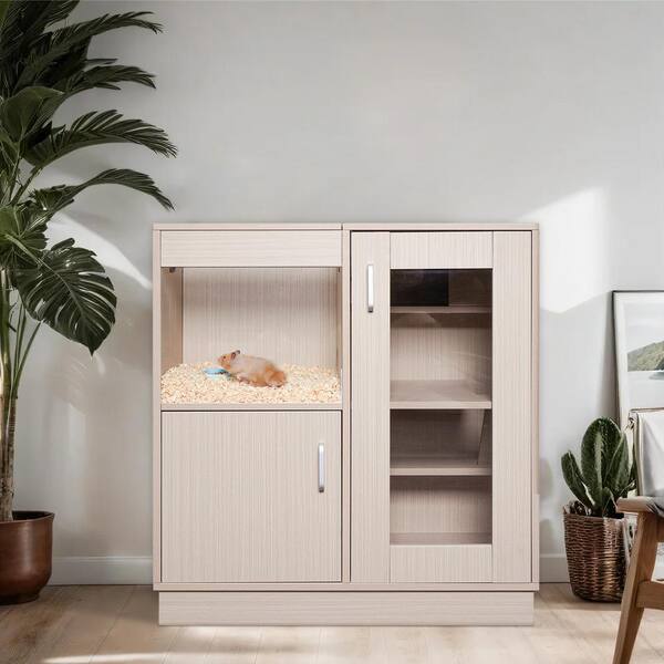 Guinea Pig Cages,, 4-Tier Hamster Cage Wood with Independent Storage Cabinet, Openable Top and Acrylic Windows