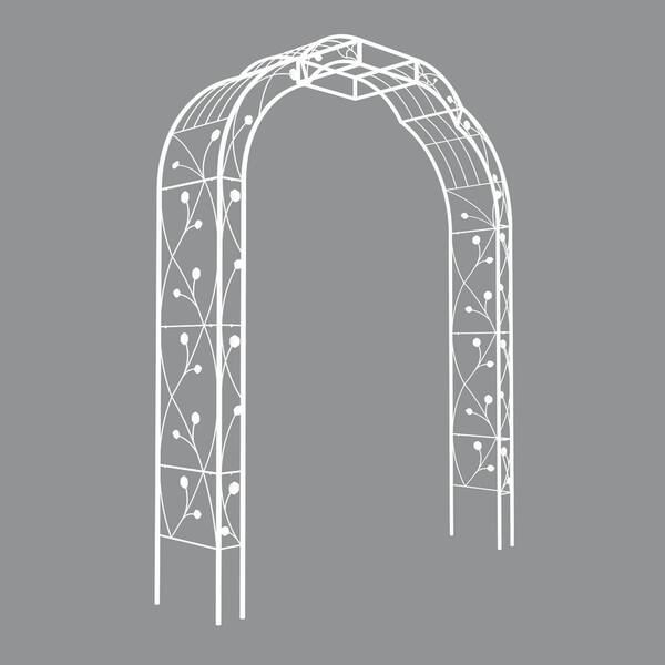 Metal Garden Arch, 74.4'' x 98.4'' Garden Arbor Trellis Climbing Plants Support Rose Arch Outdoor Arch Cream White
