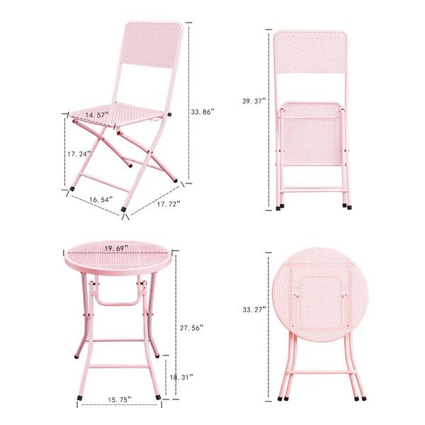 Pink 3-Piece Metal Folding Outdoor Patio Bistro Set