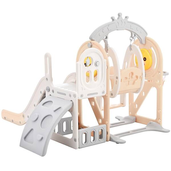 Toddler Slide and Swing Set 5 in. 1, Kids Climber Slide Playset with Basketball Hoop Freestanding Combination in Pink