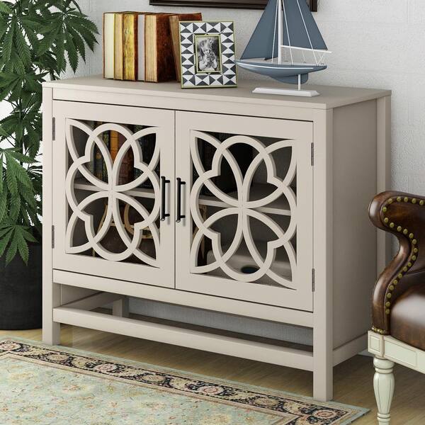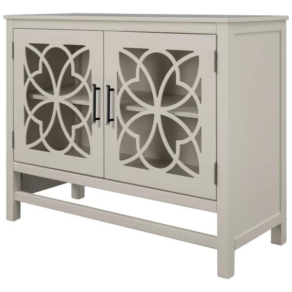 U-style White Wood Storage Cabinet with Doors and Adjustable Shelf