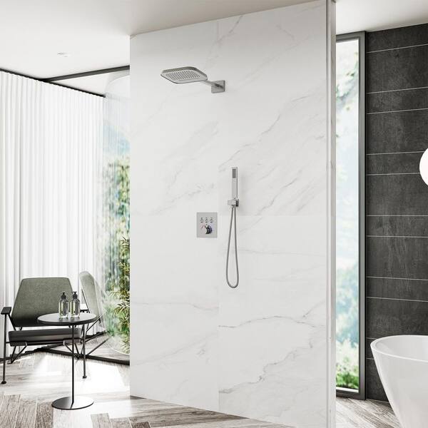2-Spray Patterns 9.92 in. Wall Mount Dual Shower Heads in Brushed Nickel