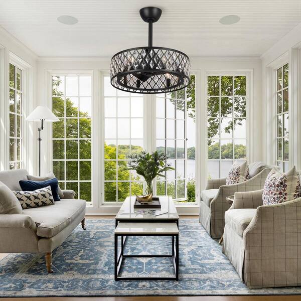 20 in. Indoor Black Ceiling Fan with Light and Remote Control