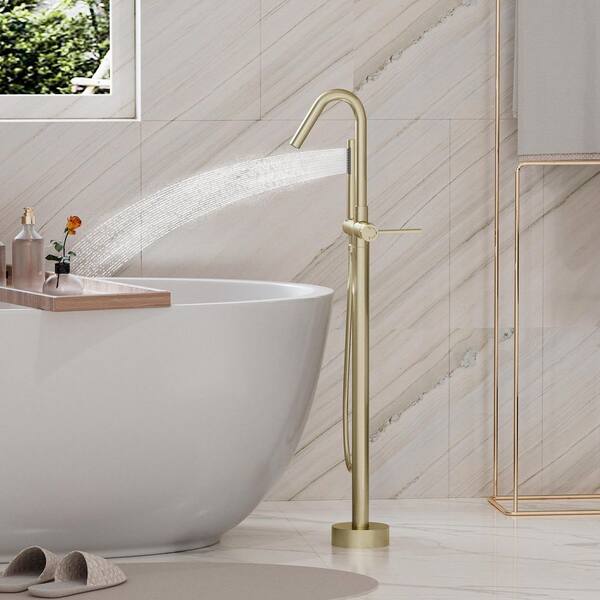 45.28 in. H Single Handle Free Standing Tub Faucet with Shower in Brushed Gold