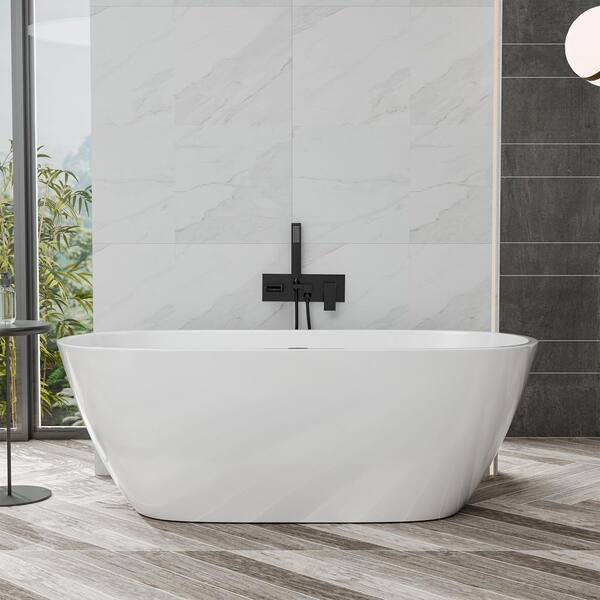 Single-Handle Wall Mount Roman Tub Faucet with Hand Shower in Matte Black