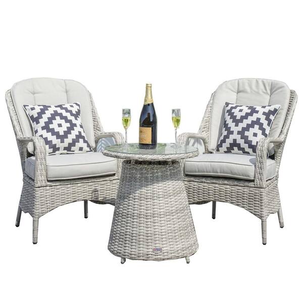 3-Piece Wicker Patio Conversation Set with Beige Cushions