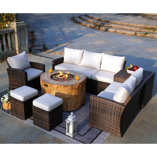 Felicia 7-Piece Wicker Patio Conversation Set with Fire Pit