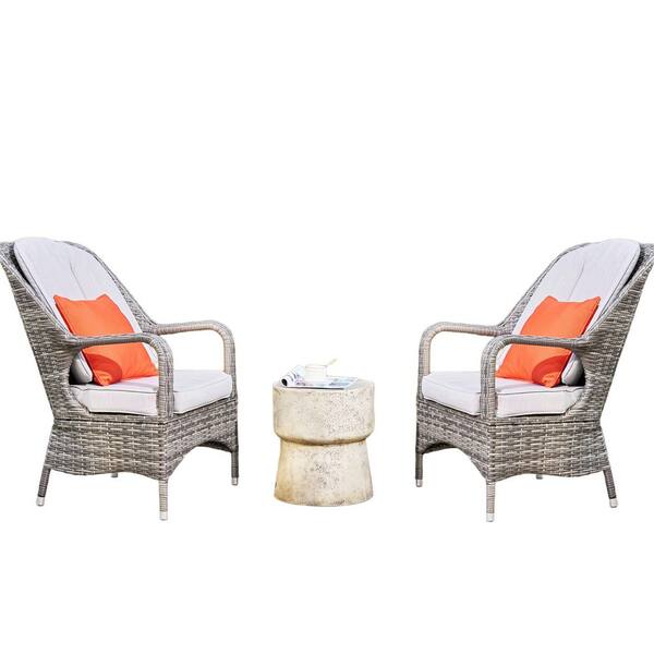 Ferdy 2-Person Outdoor Patio Wicker Aluminum Seating Group With Gray Cushions-Gray