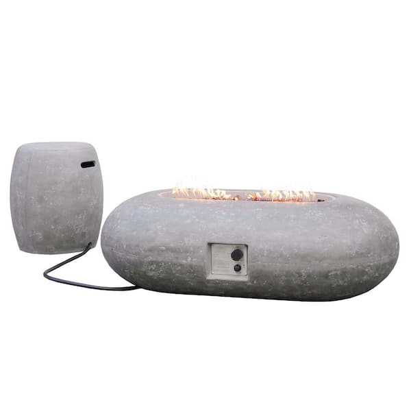 Gray Oval Outdoor Dining Fire Pit Table with Extension