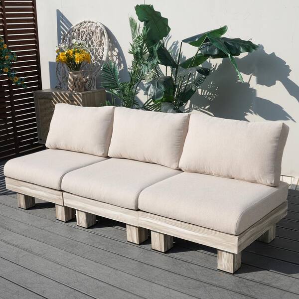 Gustave W81. 4"*d28. 9"*h25. 7" Aluminum Outdoor Wood Grain Armless Three-seat Sectional Sofa with Beige Cushions