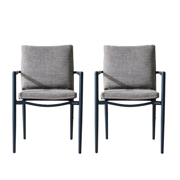 Nord Aluminum Fabric-Covered Patio Outdoor Dining Chair With Gray Cushions (2-Pack)