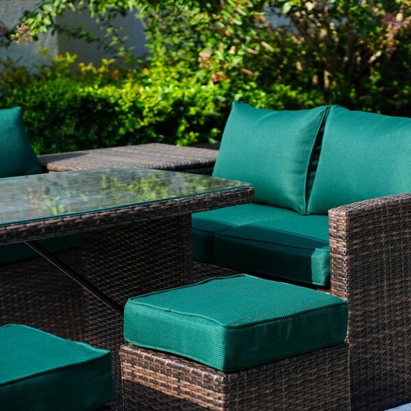 Sabrina Brown 7-Piece Wicker Outdoor Patio Conversation Seating Sofa Set with Green Thick Cushions