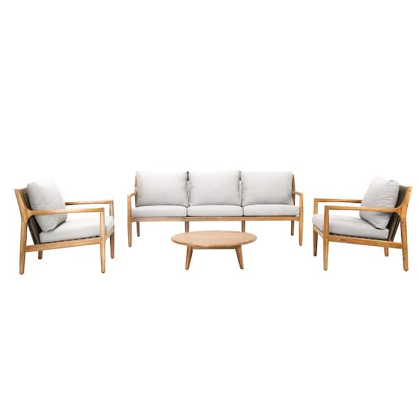 Spring 4-Piece Acacia Wood Patio Conversation Set With Gray Cushions