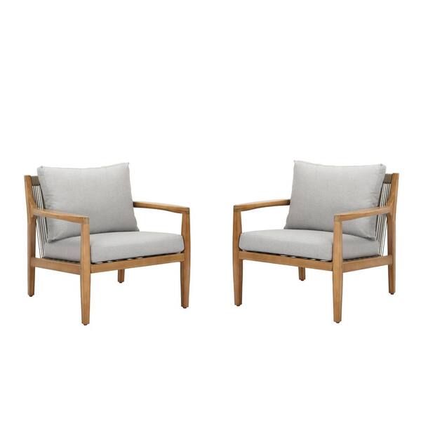 Spring Arcacia Wood Patio Outdoor Lounge Chair With Gray Cushions (Set Of 2)