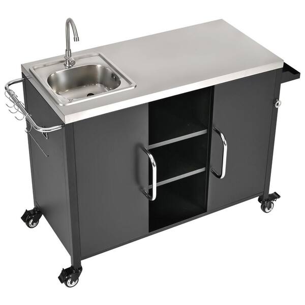 W55. 5" Metal Patio Outdoor Bar Grill Cart With Sink & Storage Cabinet