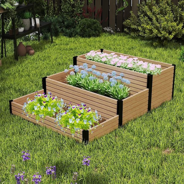 4 ft. x 5.4 ft. x 18 in. Maple Composite Panel and Alu Frame 3-Tier Rustproof Planter Box for Garden Landscaping