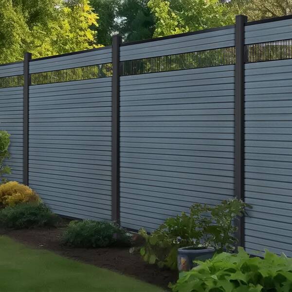 Low-Maintenance Outdoor 5.9 ft. H x 5.9 ft. W Grey Composite Fence Panels Striped Hollow Privacy Panel (2 Sets)