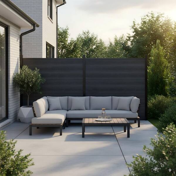 Outdoor 6 ft. H x 6 ft. W Black Composite Fence Panel with One Aluminum Post Garden Fence