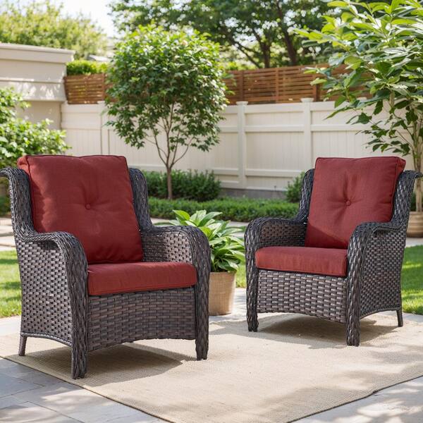 Arcline 4-Piece Brown Wicker Patio Conversation Set with Olefin Red Cushions and Lounge Chairs/Sofa