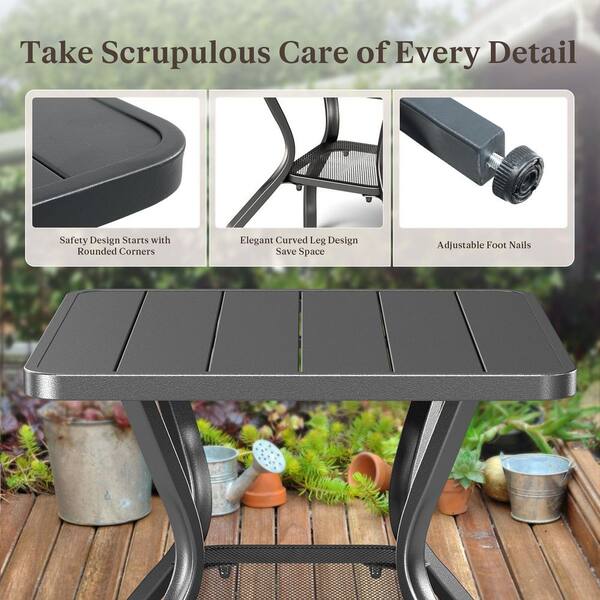 Black Square Metal Outdoor Side Table with Lower Storage Space and Classic Design