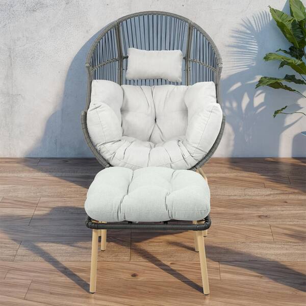 Patio Dark Gray Wicker Large Glider Egg Chair Outdoor Lounge Chair with Light Gray Cushion and Ottoman
