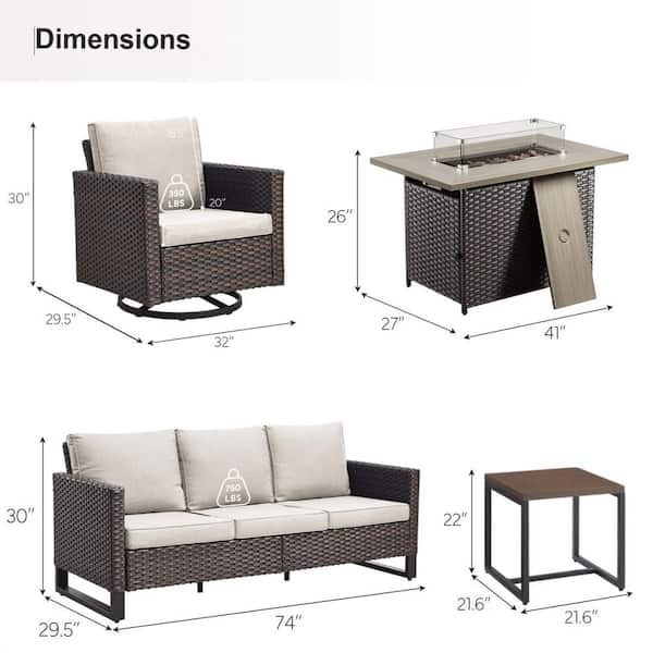U-Frame 5-Piece Brown Wicker Fire Pit Conversation Set with Olefin Beige Cushions and Swivel Glider Chairs/Couch