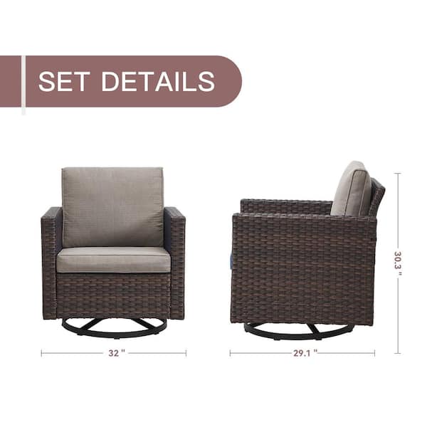 U-Frame Brown Swivel Glider Wicker Outdoor Rocking Chair with Gray Cushion (1-Pack)
