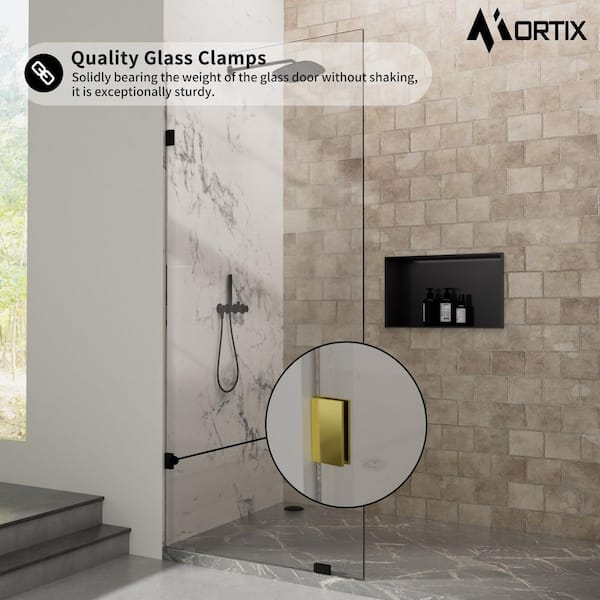 30 in. W x 78 in. H Fixed Panel Frameless Shower Door Screen in Brushed Gold with 3/8 in. (10mm) Clear Glass
