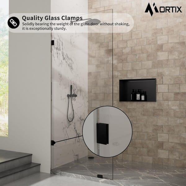 32 in. W x 78 in. H Fixed Panel Frameless Shower Door Screen in Matte Black with 3/8 in. (10 mm) Clear Glass